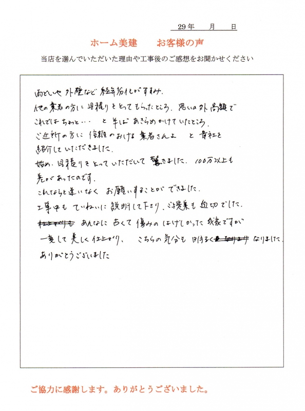 塗装をした方がよいとすすめられてその気になりました。